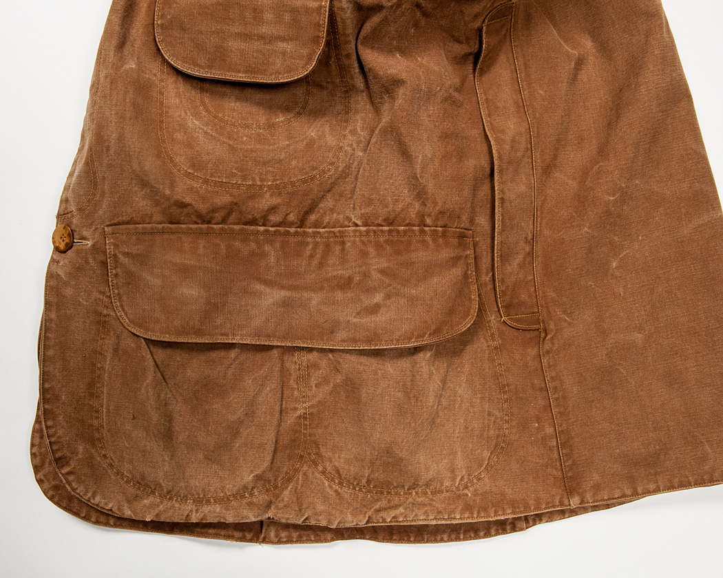 裏に当て布をはりつけているため、身頃に穴をあけ、ただたたきつけただけでポケットになっています。