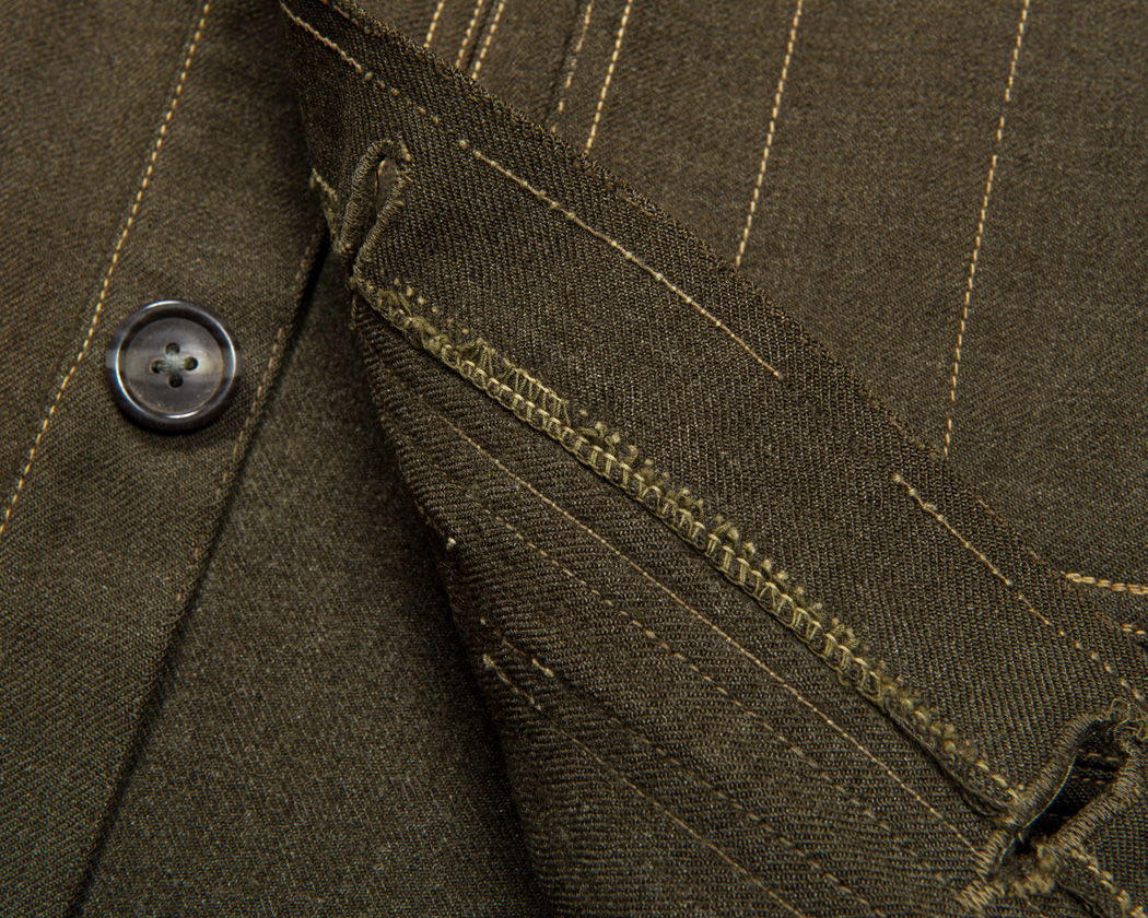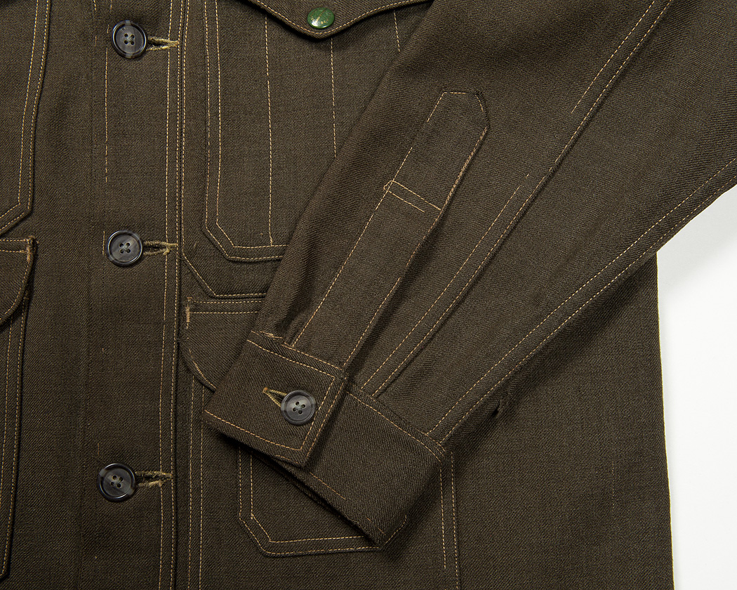 2ピースの袖。開きは剣ボロ付き。先日紹介したウールマッキノークロス(紡毛の厚地生地)とは始末が違います。
