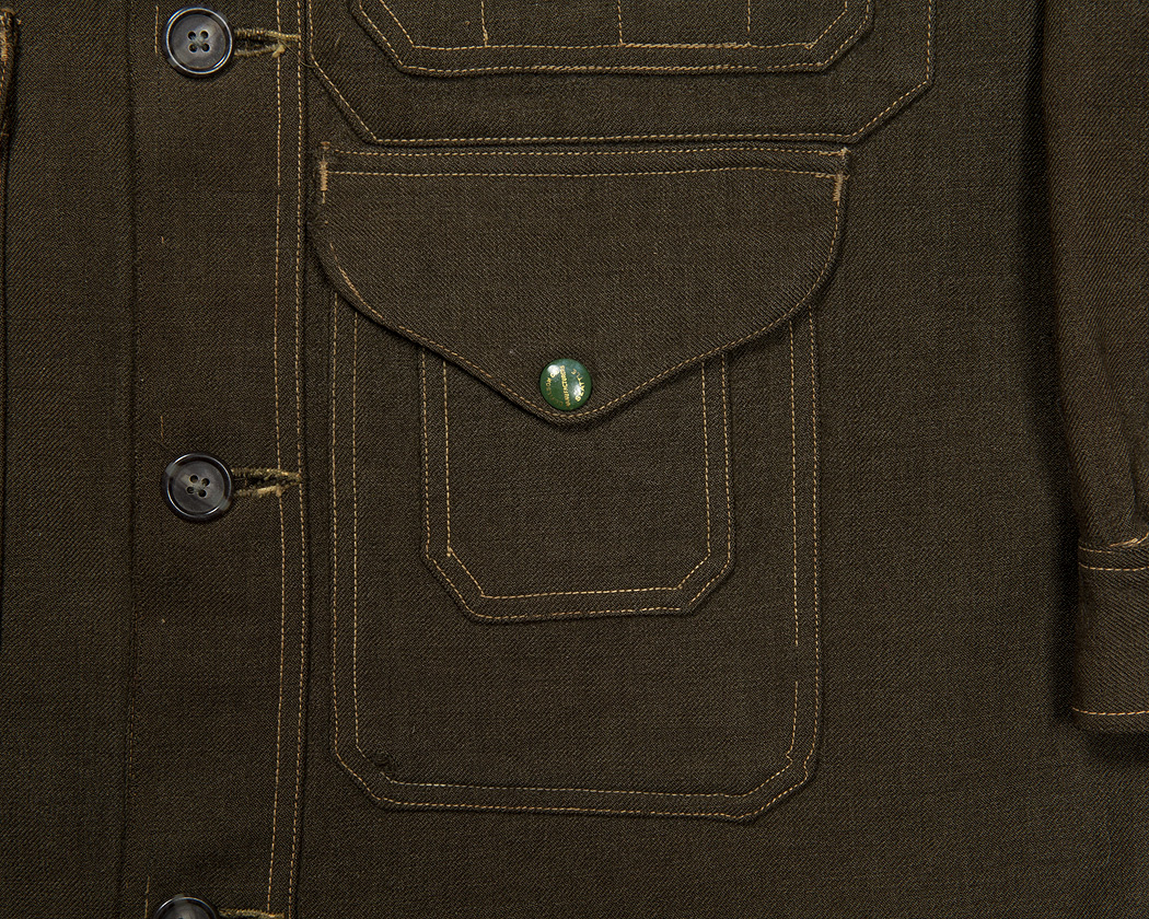 左腰のポケット。こちらも二重で、一回り小さいポケットが上に乗っています。二つのポケットを一つのスナップで止めるのがいかにもFILSONと思わせるデザインです。