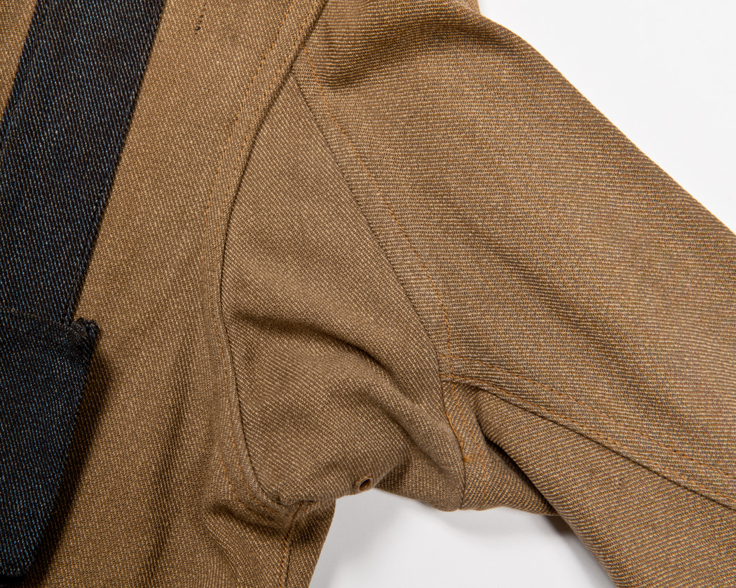 腕を上げやすいようにといった機能的な意味合いがある仕様。着てみると、確かに袖底がつっかかった感じがしない割に腕が上げやすい。一概にこの部分だけというよりは、このマチを利用して上手く各部の寸法を調整しているためですが、やはり良くできていると感じる部分です。