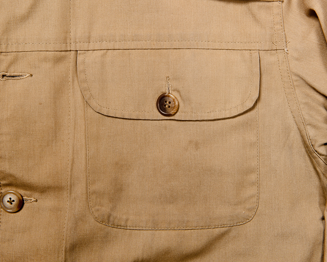 大型のフラップつき胸ポケット。