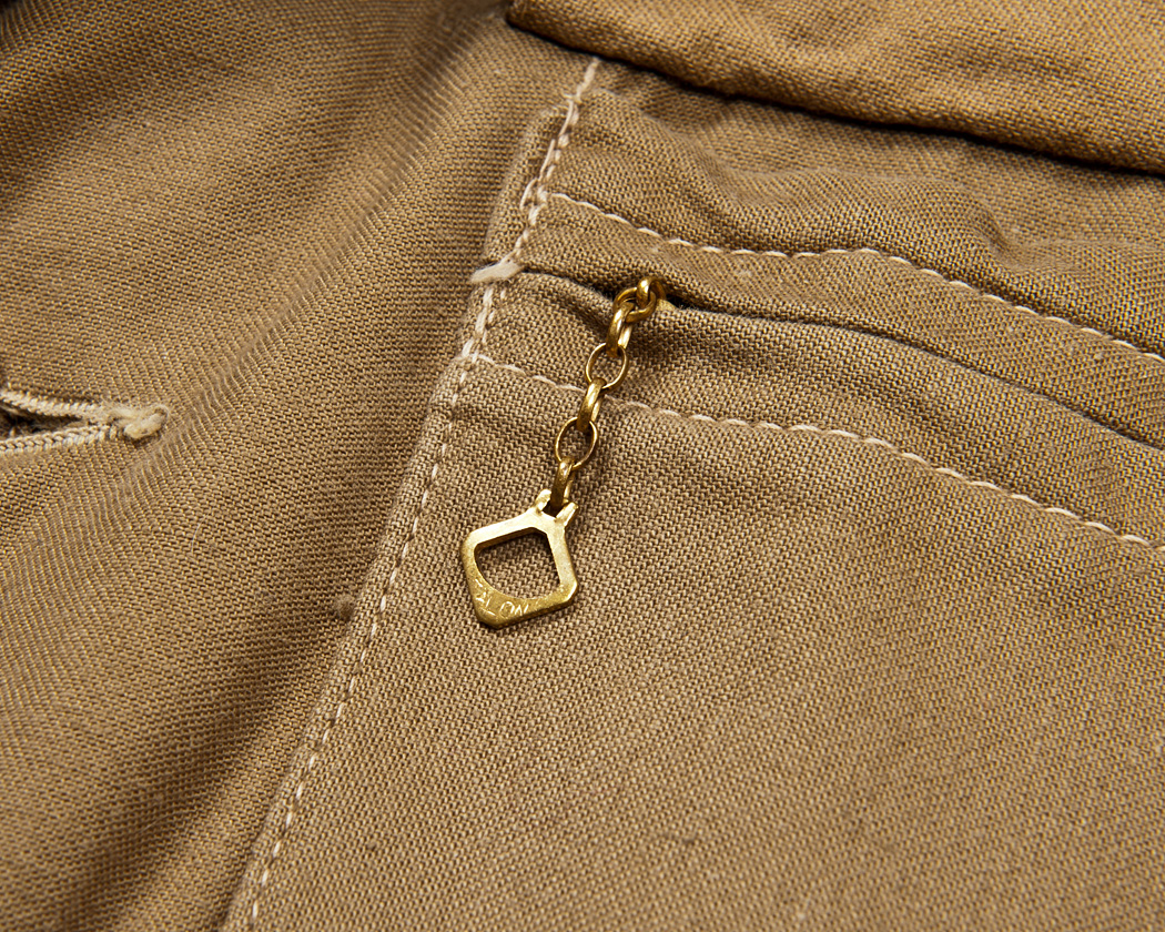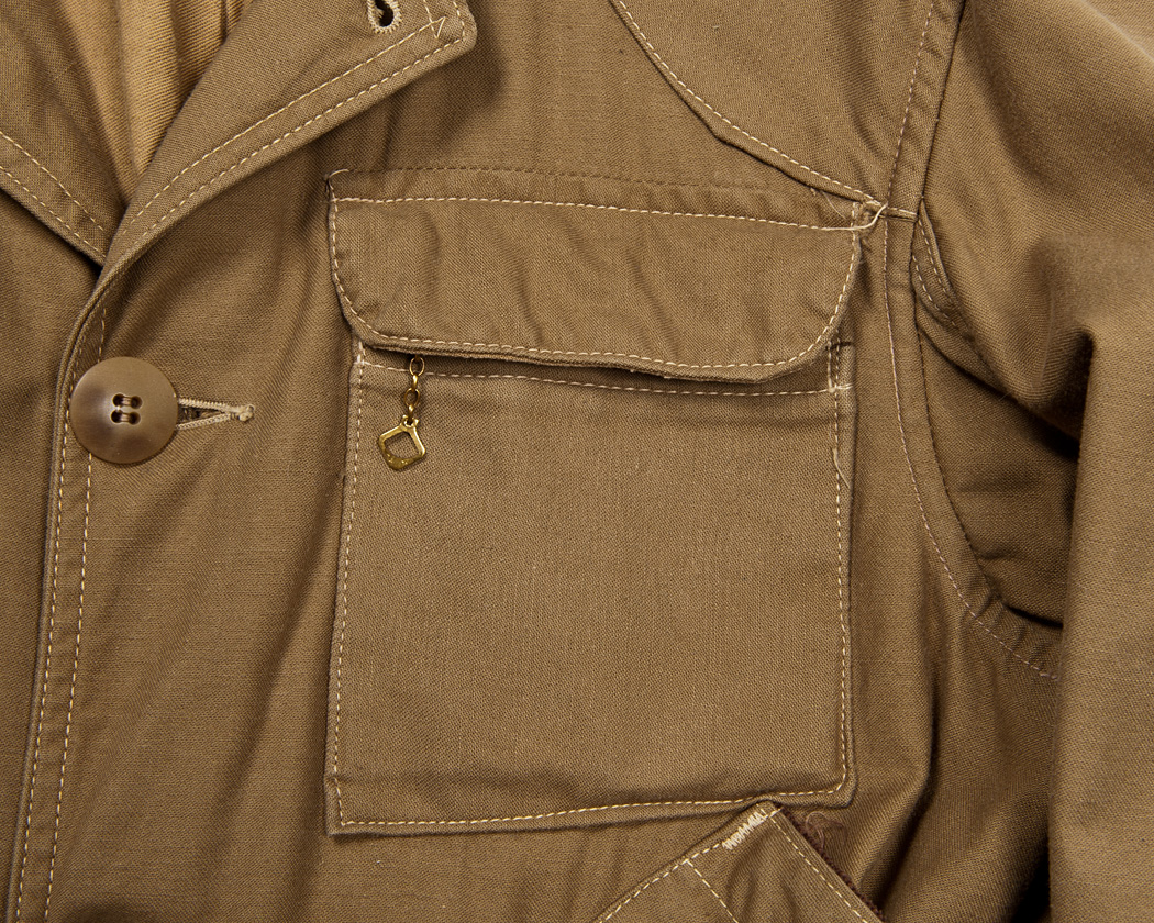 右胸はポケット本体とファスナー開きの二重構造。ファスナーはTALON刻印入りのひし形引き手。