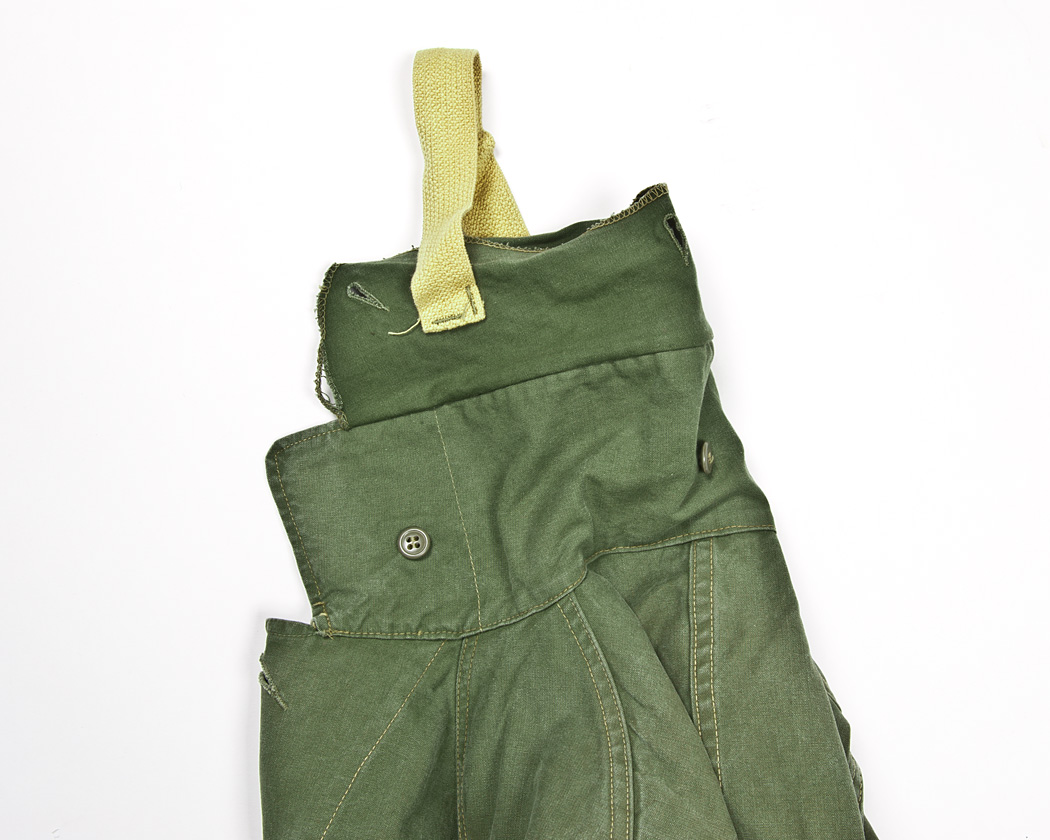 はたしてどのように使う為のストラップなのかわかりませんが、この襟裏の仕様が襟全体のボリューム感を出しています。