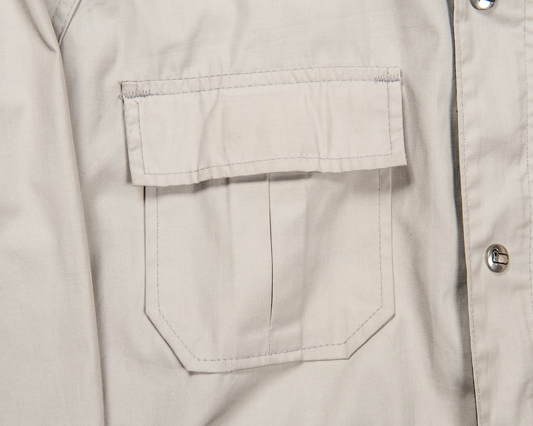 妙に内側を縫ったポケットの取り付け、縫い終わりにはカンヌキ止め、そしてベルクロ。マウンテンパーカーらしいポケットです。