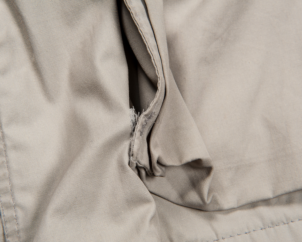 構造上、力が強くかかり、土台の布は一枚だけ。かつ高密度に織られた生地なので、どうしても裂けてしまいがちです。