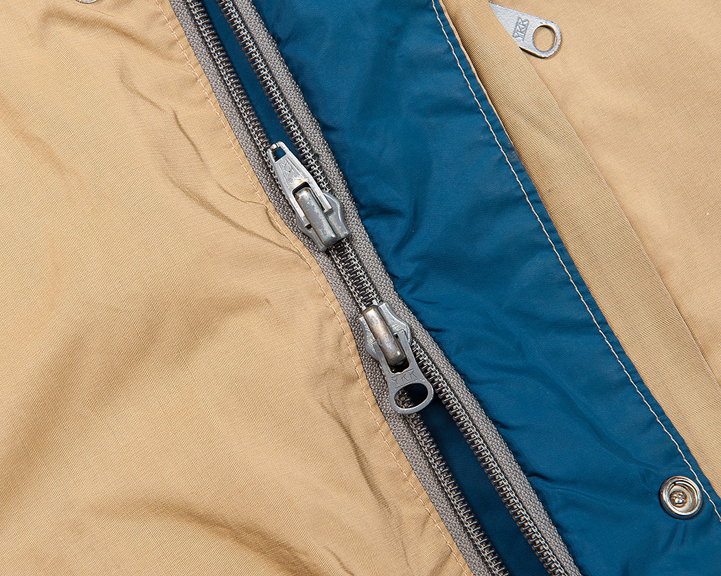 フロントファスナーも樹脂のコイルファスナー。YKK。