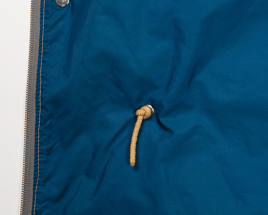 かと思うと、ドローコードを通す口はアイレットを裏地にそのまま打っています。