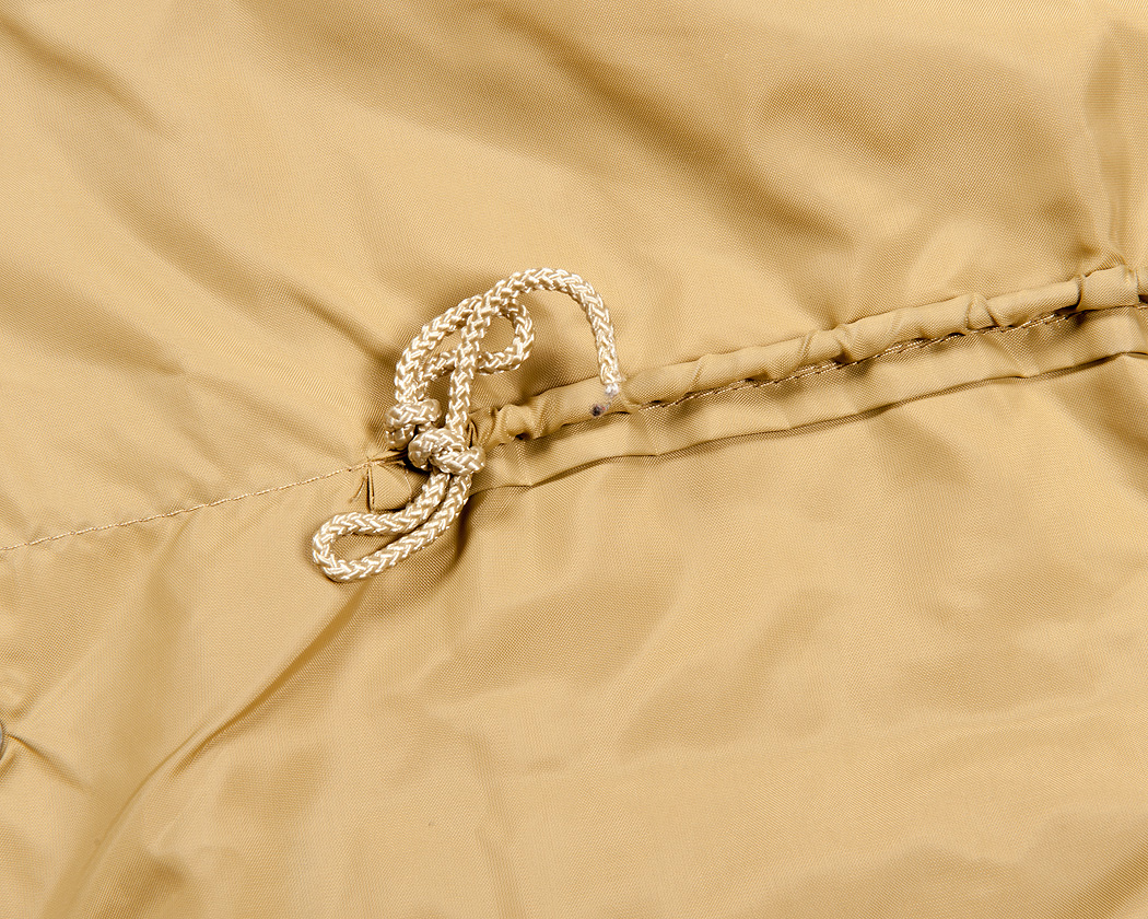 トンネル状の生地を裏地に縫いつけ、その中にコードを通しています。これならば、薄い裏地に打ったアイレットが抜ける心配もありません。