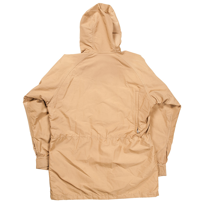 背面には大型ポケット。締まった状態でファスナーが下という。不用意にポケットが開いてしまわないようにあえて常識とは逆に付けたのではないでしょうか。アウトドアウェアでは今でもよく見られる仕様です。