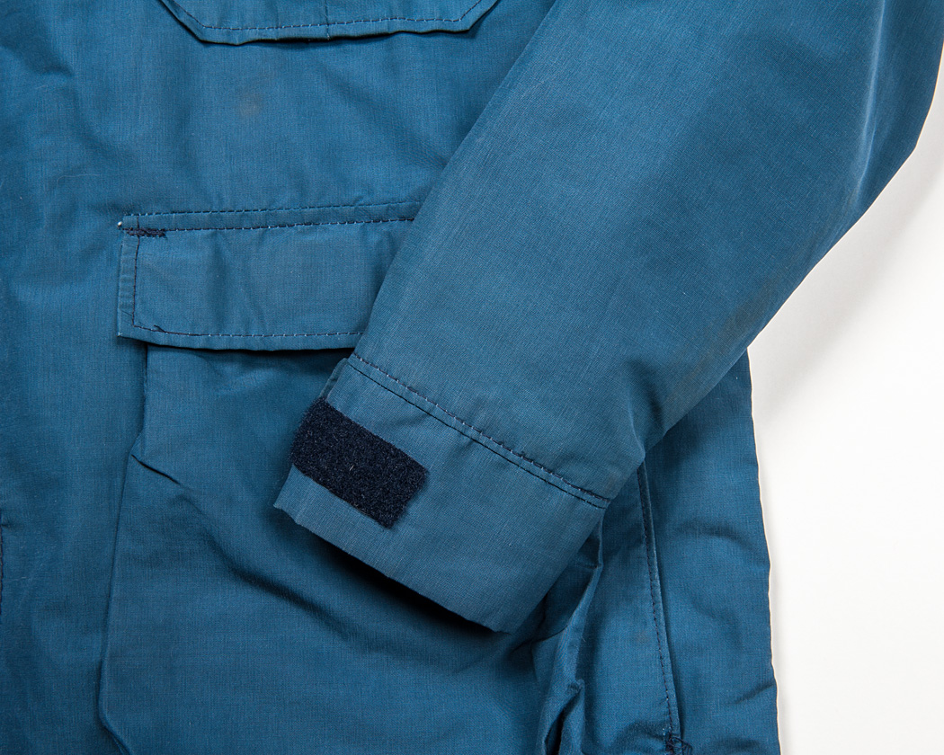 袖口も面ファスナーを使った調整がついています。マチをつけ、袖口を広げることでグローブをしたとき、素手で着たときと多様な寸法に対応できるよう工夫されています。