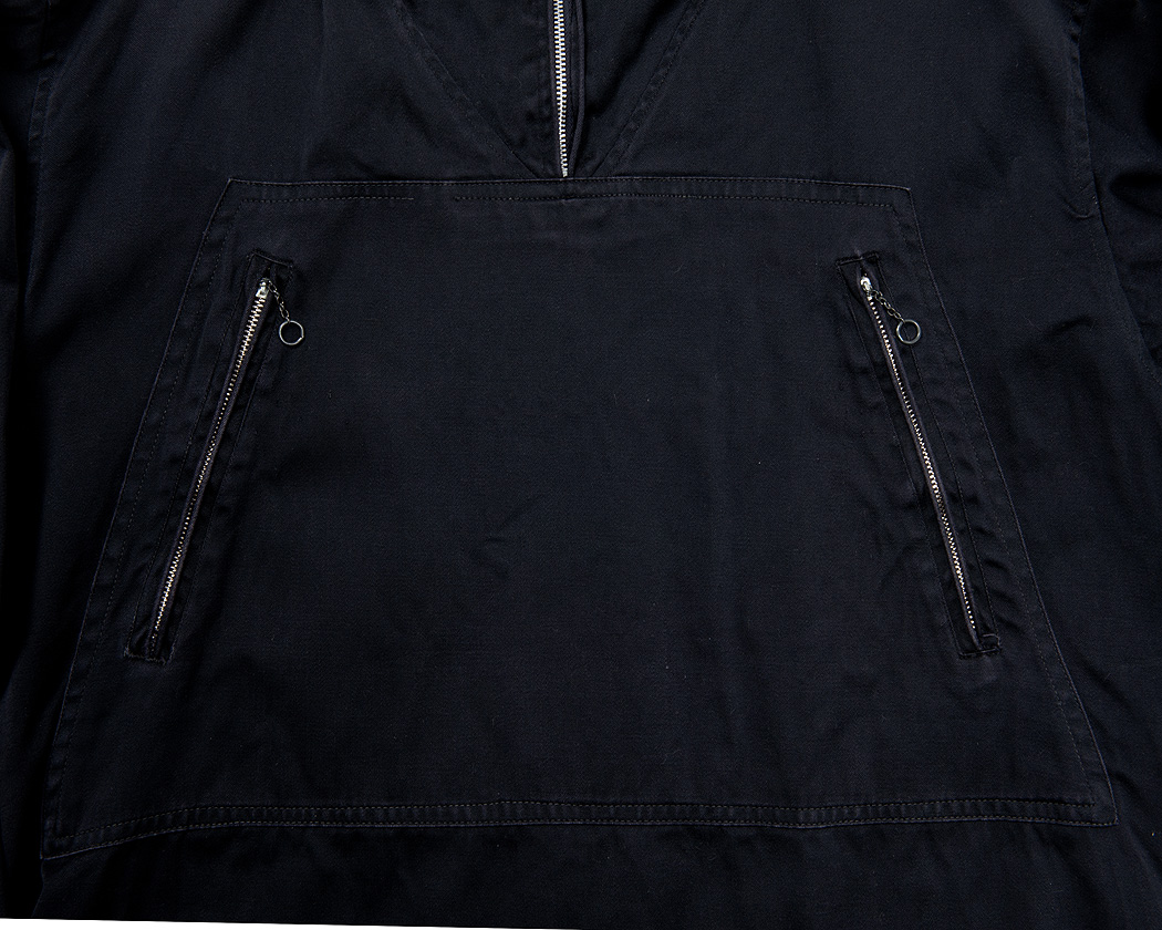 台形の生地をたたきつけてつくられたフロントポケット。