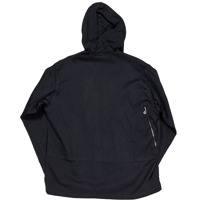 この1枚のジャケットに三つの違うファスナー、これに魅かれて買ってしまったのですが、黒という色、コットンサテンの適度な機能性、色落ちしてく風合い、これらが何とも言えないバランスで成り立っているパーカーでとても気に入っています。