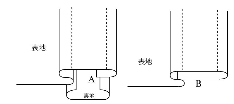 続き前立てと言うと、Bの形。この場合、裏地は無くても大丈夫です。