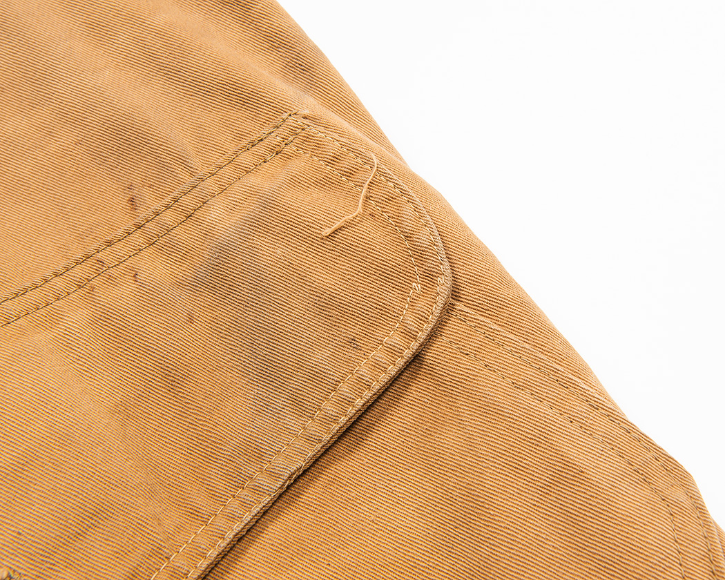 フラップ周りなど、ダブルステッチが二本針で縫っている証拠。縫っている途中で押え金を上げてしまい、ステッチがずれているのですが、そこが二本ともずれています。
