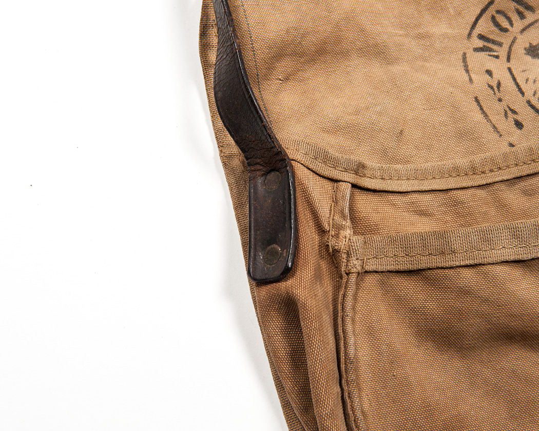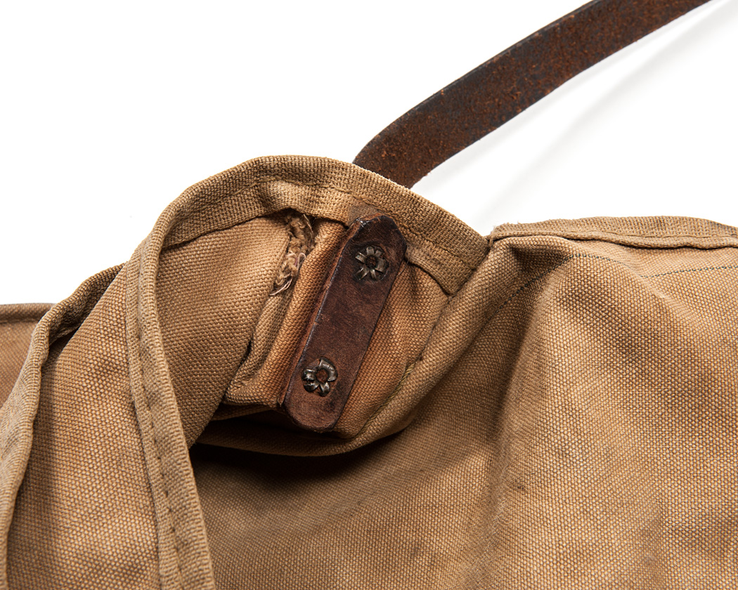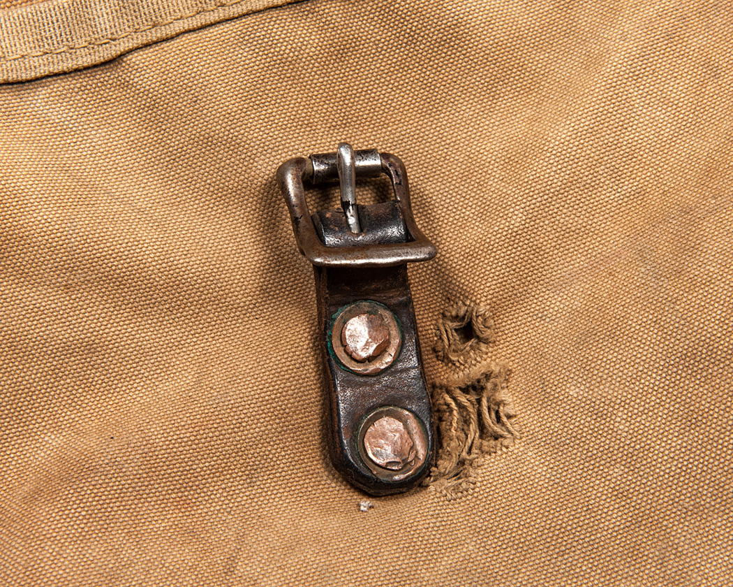 肩掛けストラップは、先が割れるタイプのリベットでとめられています。