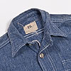 キッズサイズのワークシャツ。1ポケット、フロントの下端がラウンド、袖が2枚ものとクラシカルな仕様です。