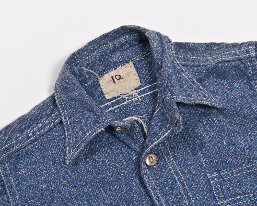その下には、背中に当てられたヨークをたたくダブルのチェーンステッチが走っています。