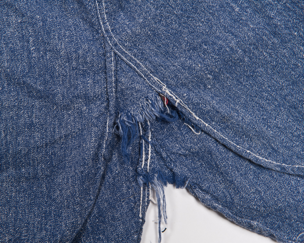 脇は三角マチ始末なのですが、ミミを出す方向を間違えたのか、肝心な部分が断ち切りになってしまっています。