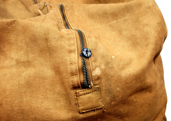 このバッグも同様に、ファスナーのムシが一箇所、切れてしまってそこから先がうまくしまりません。