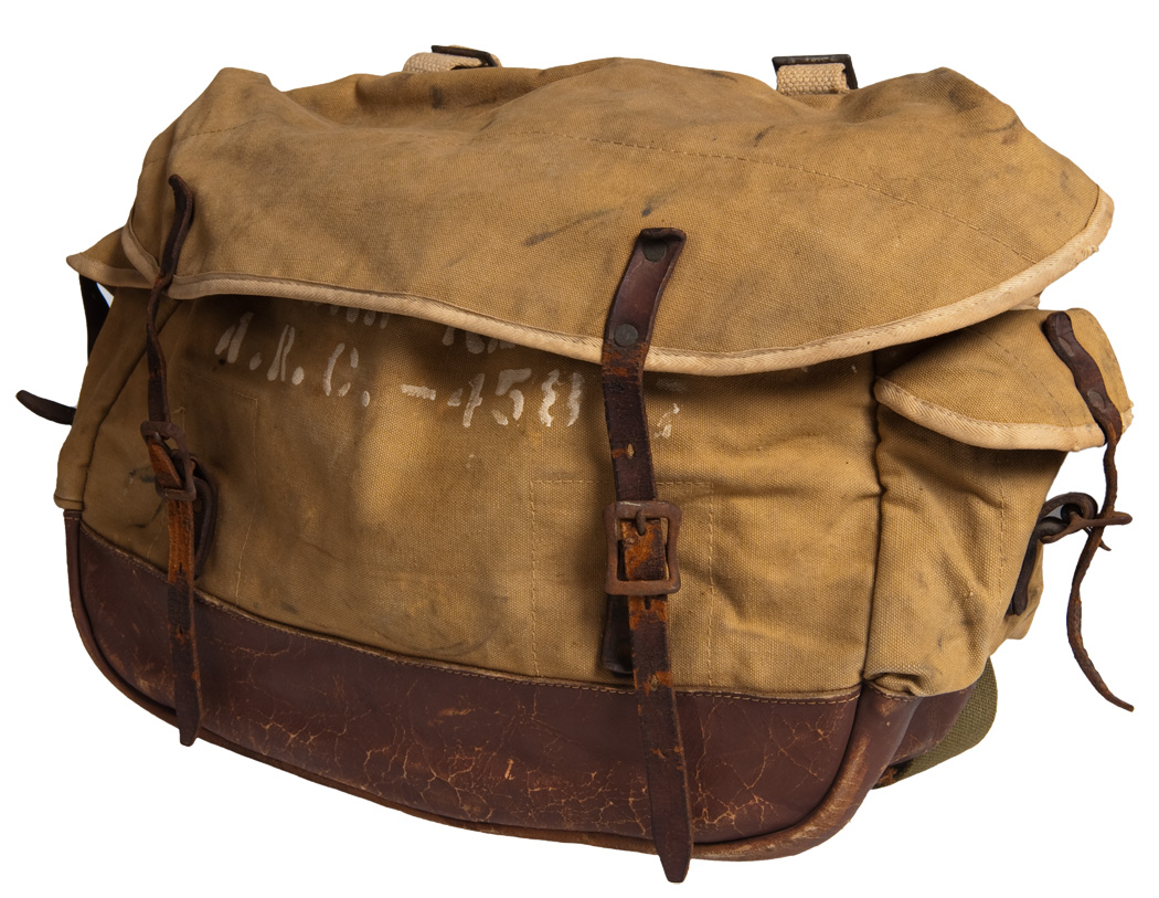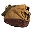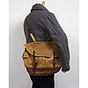 本体は硬く、細めの糸で織られたキャンバス。底部はレザーで補強され、フラップ・サイドポケットのフラップはすべてストラップとバックルでとめるつくりです。
