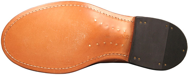 レザーソールはグッドイヤーウェルト製法でつけられ、貫通したステッチがソールに見えています。