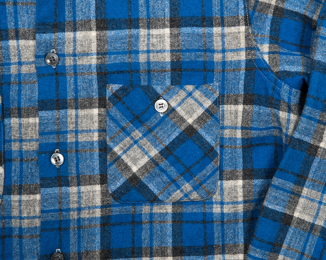 現実的に、チェック柄のシャツを作るときに悩むのがポケットの柄合わせです。合わせる事は出来ますが、生地の必要量も増えますし、裁断の手間もかかります。