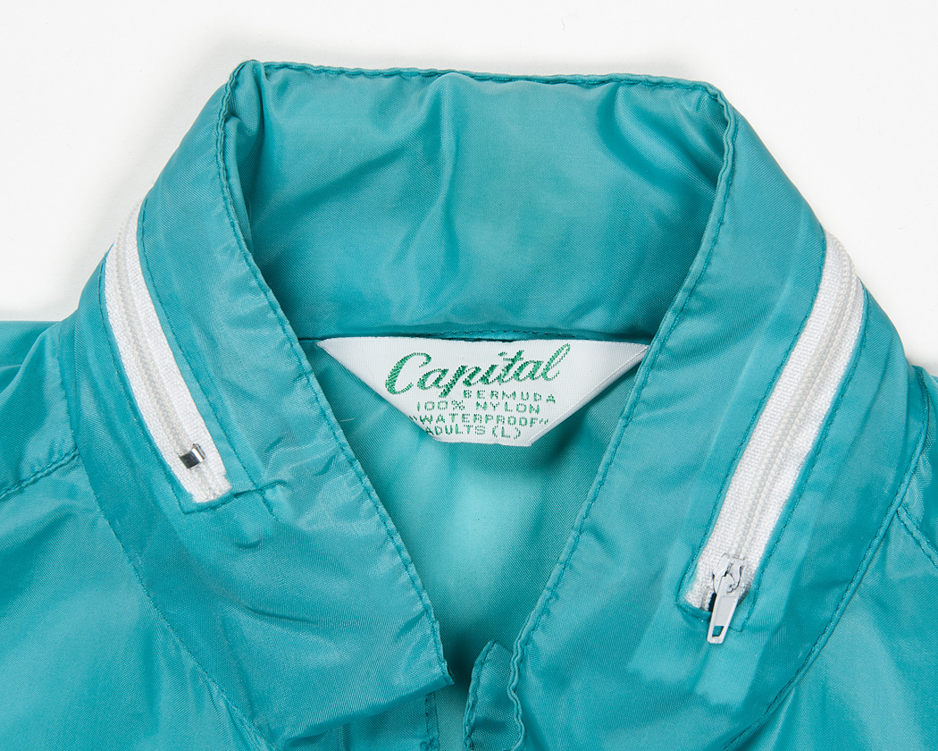 ネームは三角形型に挟む物で"Capital Bermuda 100% NYLON WATERPROOF ADULTS(L) "とあります。