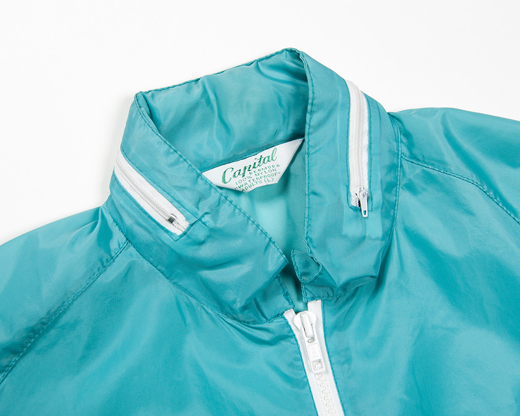 一見するとスタンドカラーですが、ファスナーがついています。中にフードが収納されているので若干ボリュームがあります。