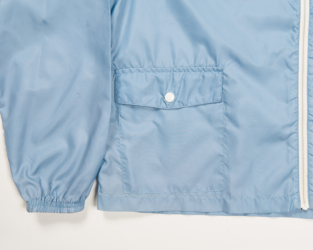 これも、ウィンドブレーカーの特徴でどちらか一つしかポケットの無い事が多々あります。ポケットは付けたい、でも簡素化したい、結果一つに成ったのではないでしょうか。