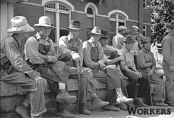 アーカンソー州、ベッツビルの郡庁舎の壁に集まるワーカー達です。