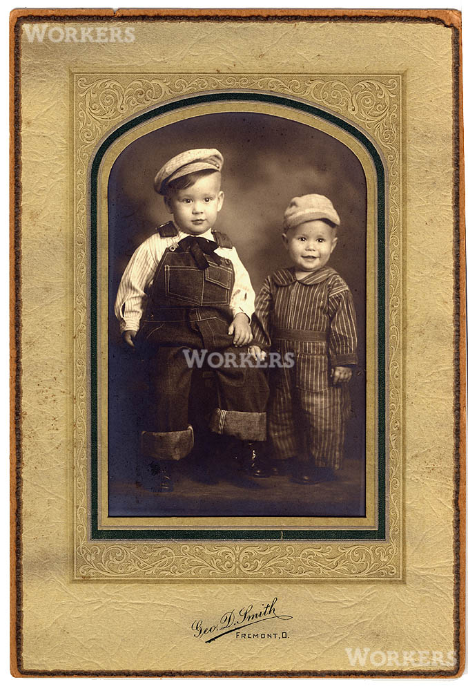 なんともカワイイ、オーバーオールを着た子供たちの肖像写真です。