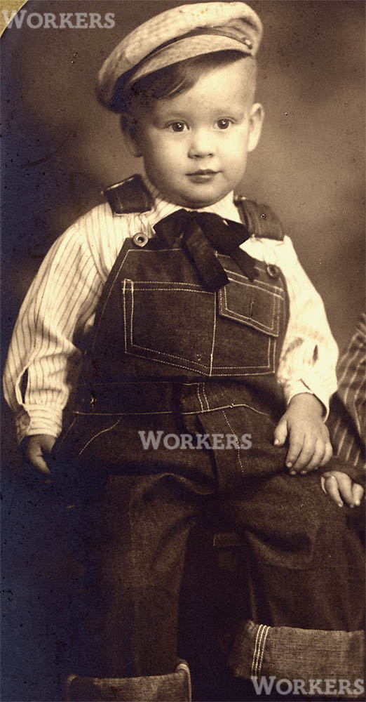 以前にも、紹介しましたが、このようなワークウェアを子供に着せてとった写真は意外と多いです。