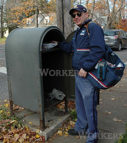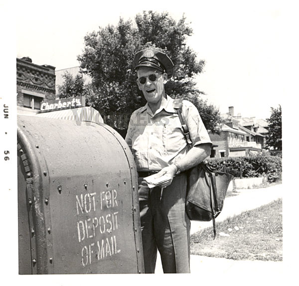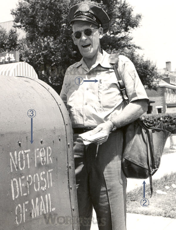 ステンシルで入れられた注意書き、メールは入れるな?とでも書いてあるのでしょうか。だったら小包を入れるのか?しかし、おじさんの手にはメールらしきものが・・・それとも、ゴミ箱の前か何かでジョークででも撮った写真か?どなたか、詳しい方、教えてください。