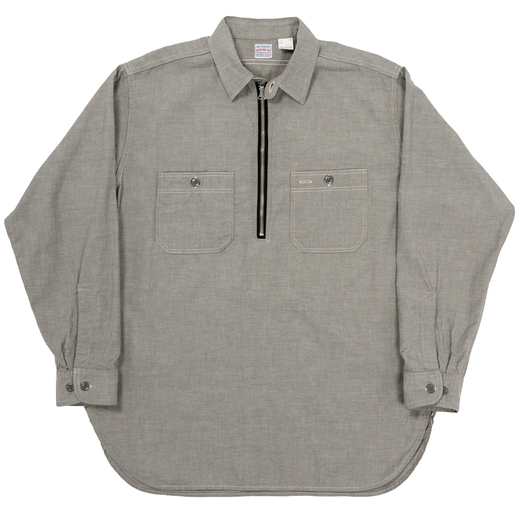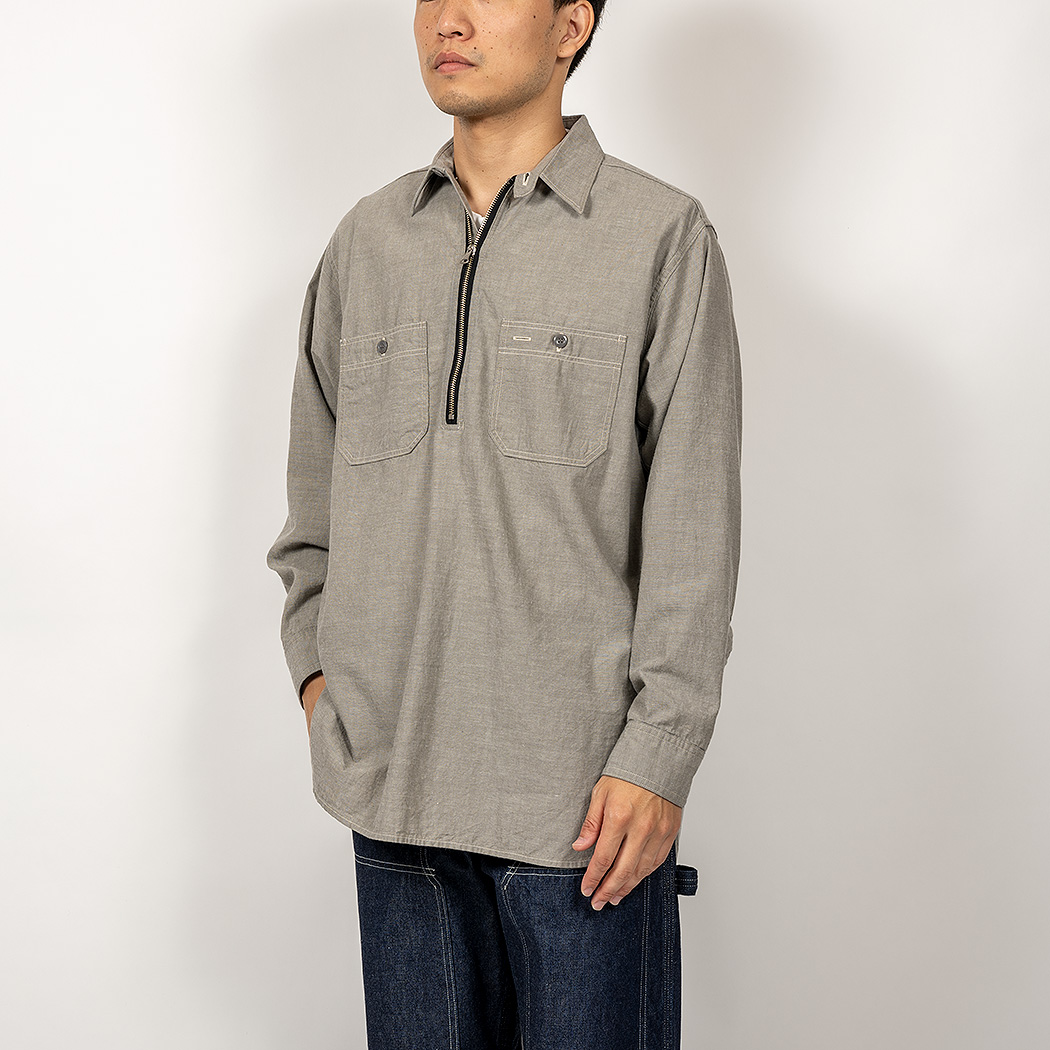 品名 Zip Work Shirt, Grey Chambray