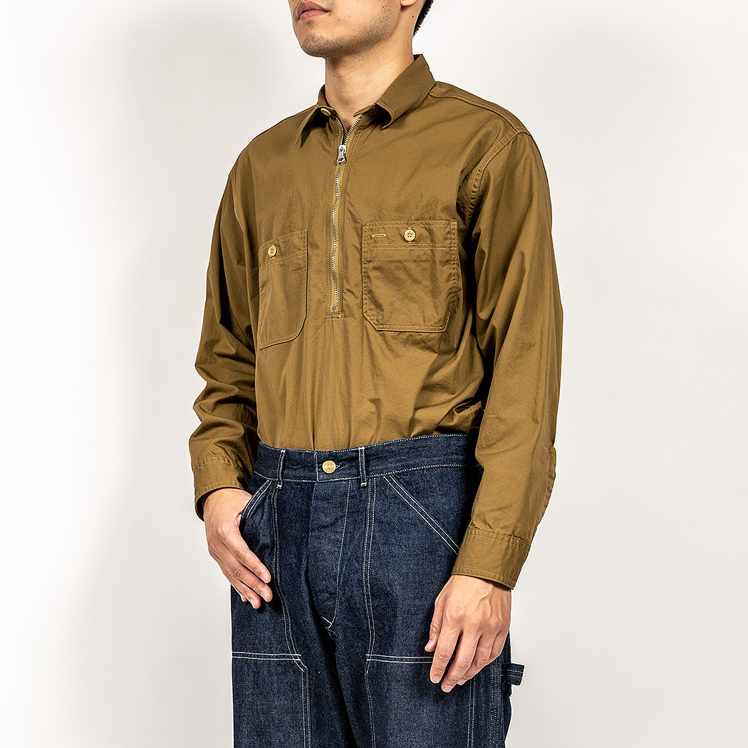 ハーフジップワークシャツ、私はいかにもワークウェアらしい力強さがあって大好きです。が、世の中では取り扱いが少ない!検索したらWORKERS のハーフジップばかり出てきてしまいました。