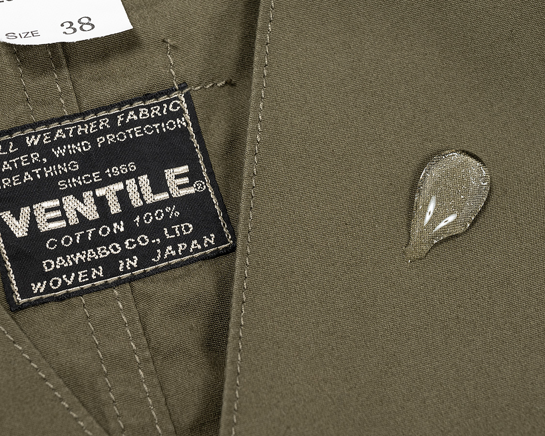 Khaki, Navyは薄手のベンタイル。撥水性あり。