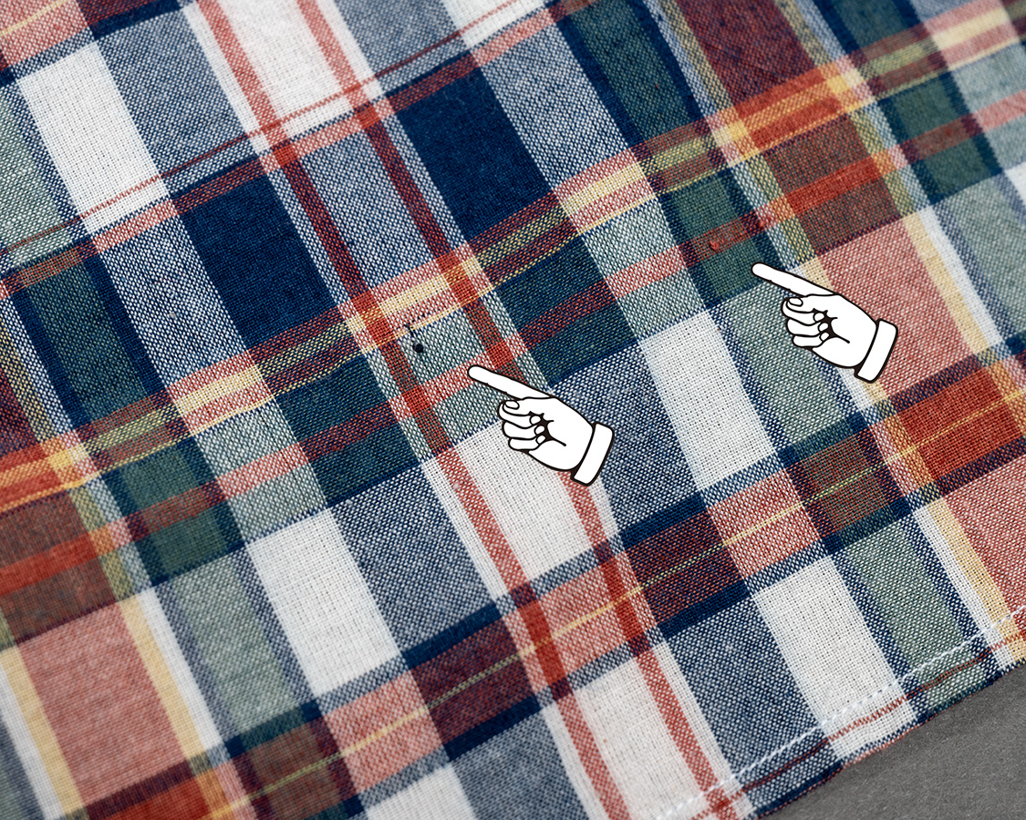 マドラスは写真のような色が染まり切らない部分、織ムラなどがあります。