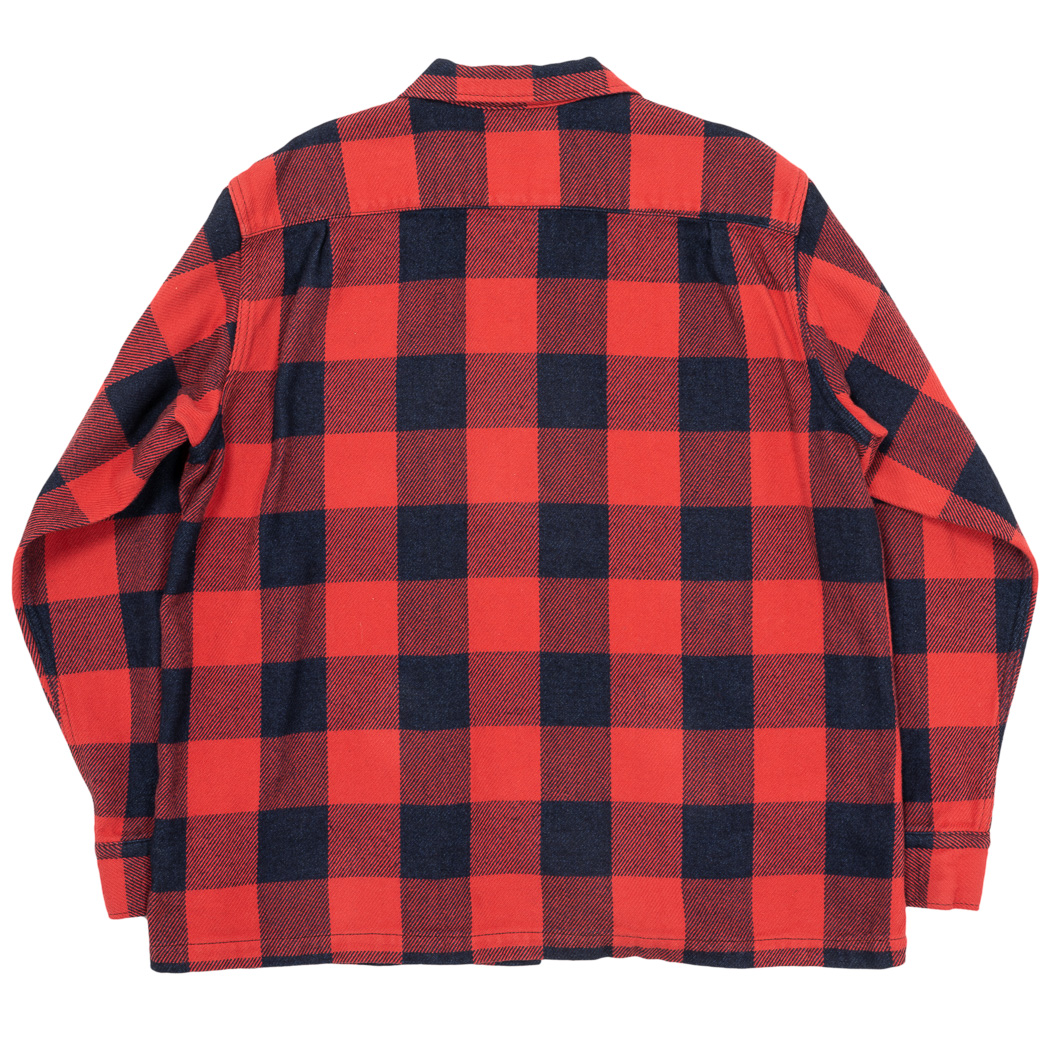 Flannel Open Collar Shirt, Red Indigo Buffalo Check