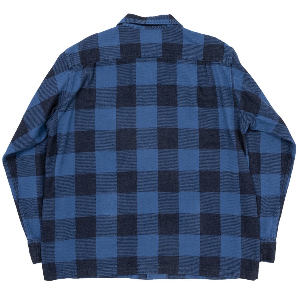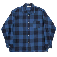 Flannel Open Collar Shirt, Navy Indigo Buffalo Check