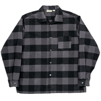 Flannel Open Collar Shirt, Grey Buffalo Check