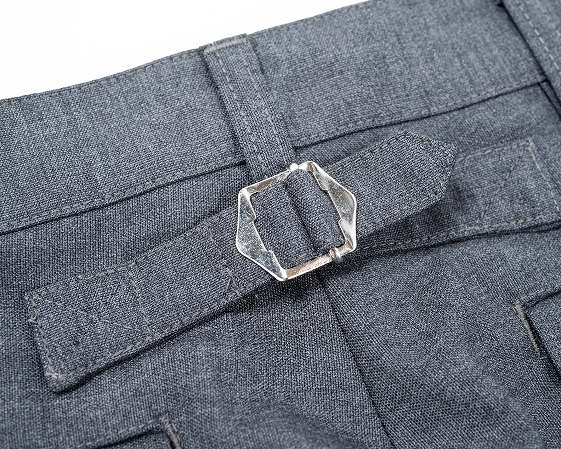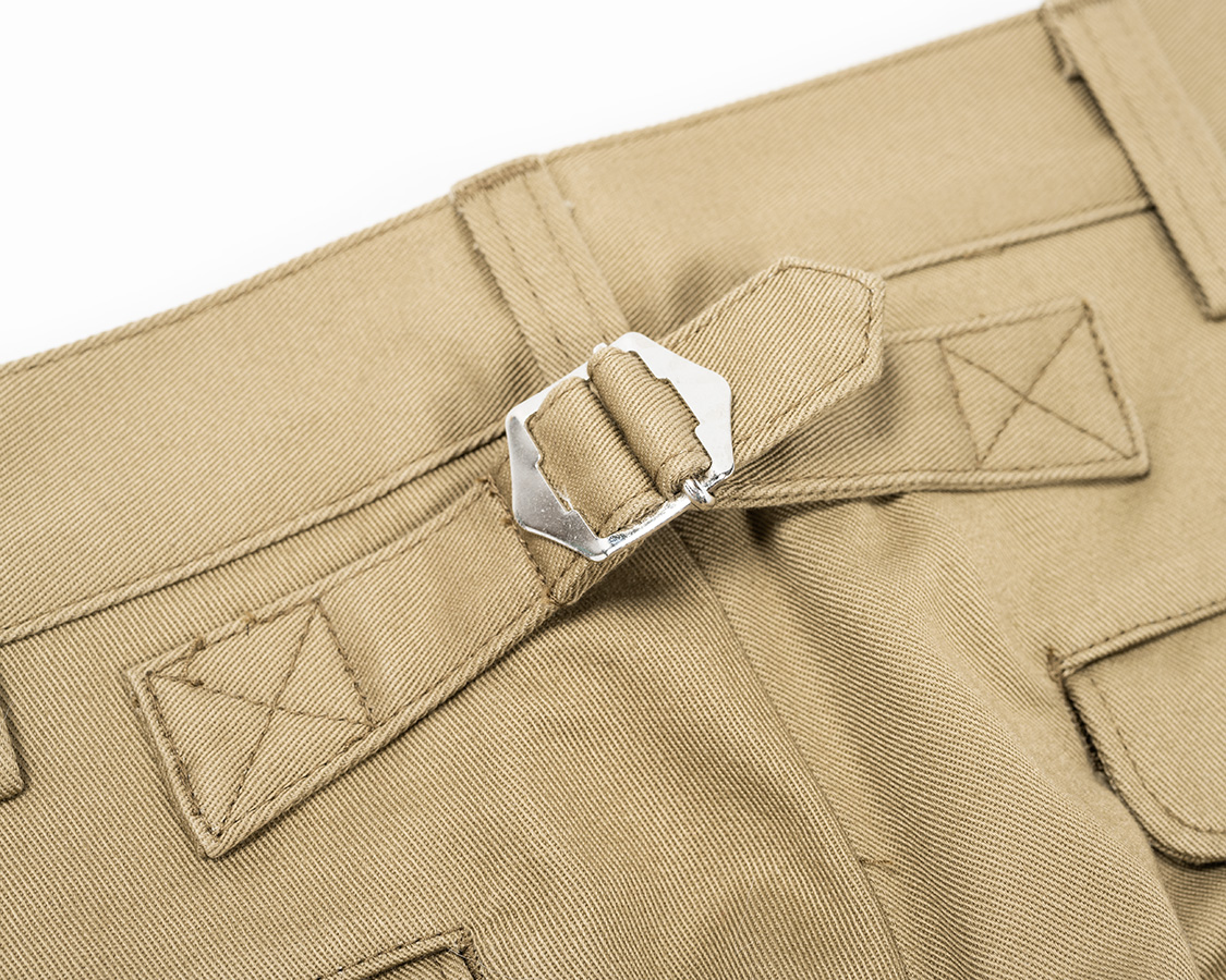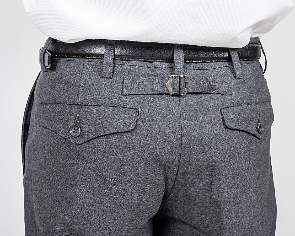 アイビーパンツはでなければならない!の尾錠。尾錠本来のサイズ調節の役目はほとんど果たしません。果たすぐらい締めると不格好です。あくまで飾り!