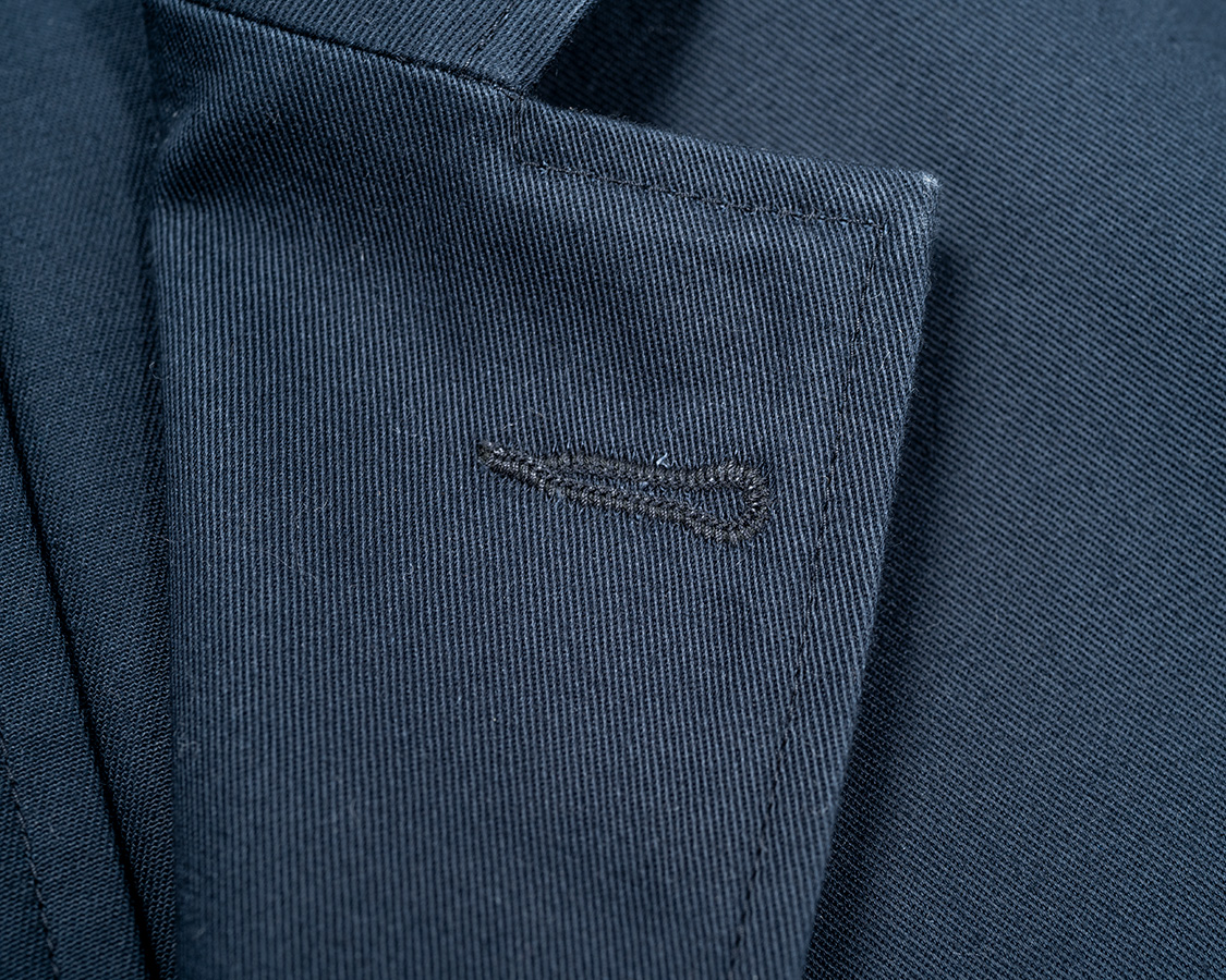「いや、俺はどうしてもフラワーを飾って、フラスコもつけたい!」という方はメスを入れて、ラペル裏にフラスコを引っ掛ける紐ループをご自分でつけてください。近所のお直し屋さんに頼むと「何言ってるんだ?」と成りそうなので、どこかに依頼するならテーラーさんに頼んでください。