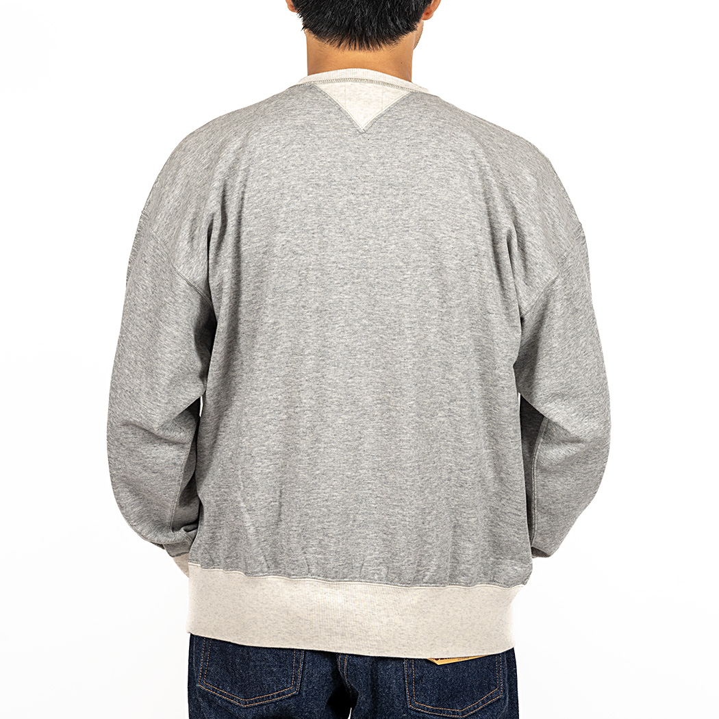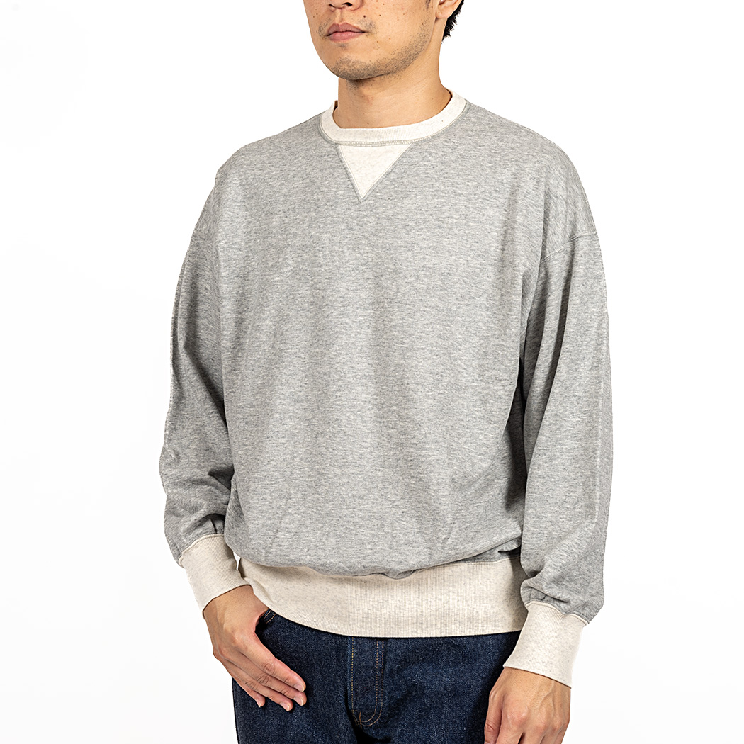 真冬以外の時期、インナーとしても着やすい厚みで作りたいと、8 オンス・起毛しない裏毛(スウェット素材)でラインナップ。春スウェットは作っても売れないのに、自分が着たいとどうしても形にしたくなる。服好きがメーカーやるもんじゃ ないという良い例です。