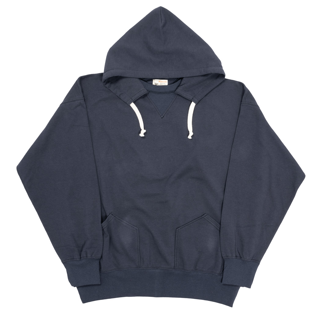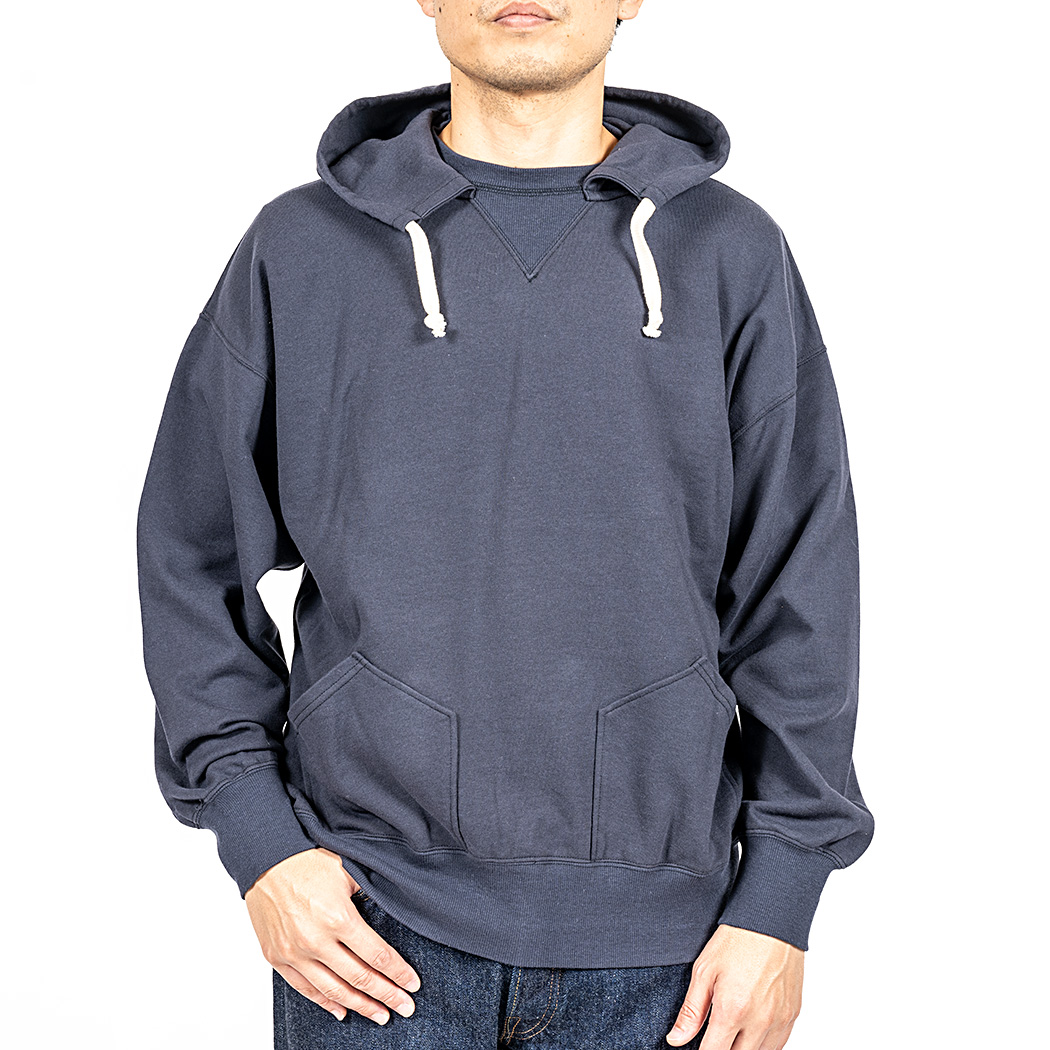 真冬以外の時期、インナーとしても着やすい厚みで作りたいと、8 オンス・起毛しない裏毛(スウェット素材)でラインナップ。春スウェットは作っても売れないのに、自分が着たいとどうしても形にしたくなる。服好きがメーカーやるもんじゃ ないという良い例です。