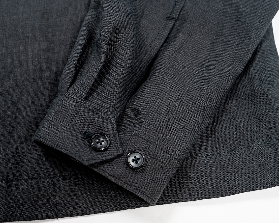 夏向きという事で袖口はカフス+開き仕様。袖がまくれます。
