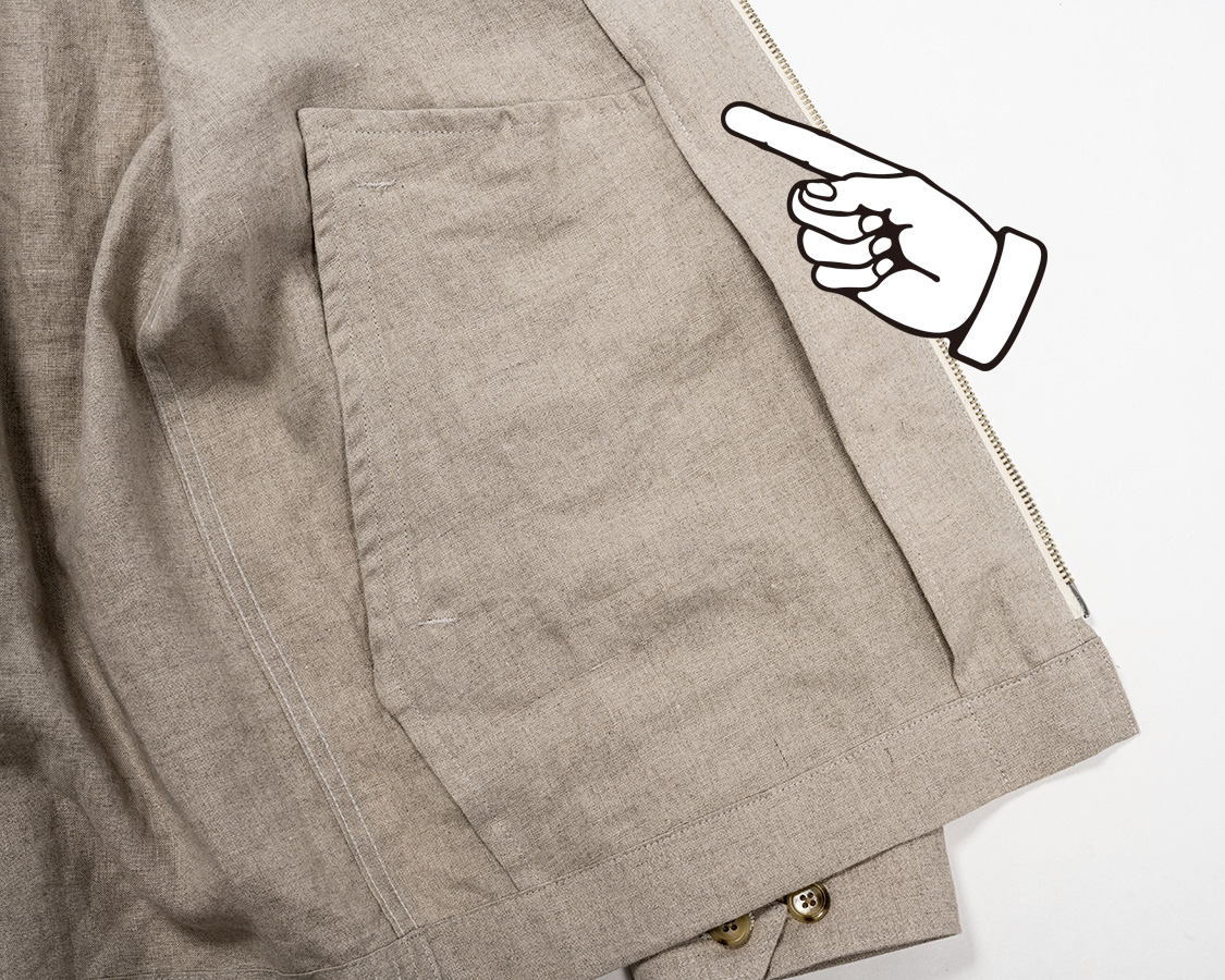 裾のカットはスクウェア。腰にリブは無しにして、太めの三巻始末。