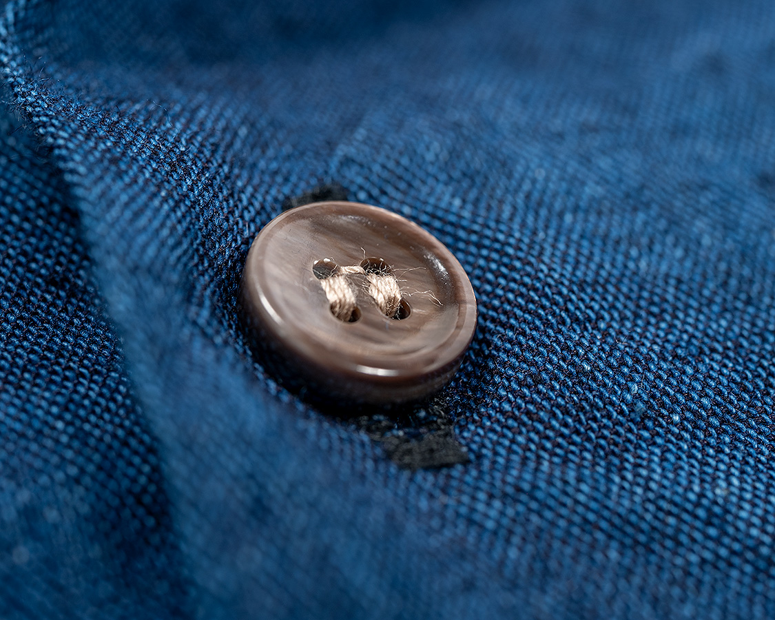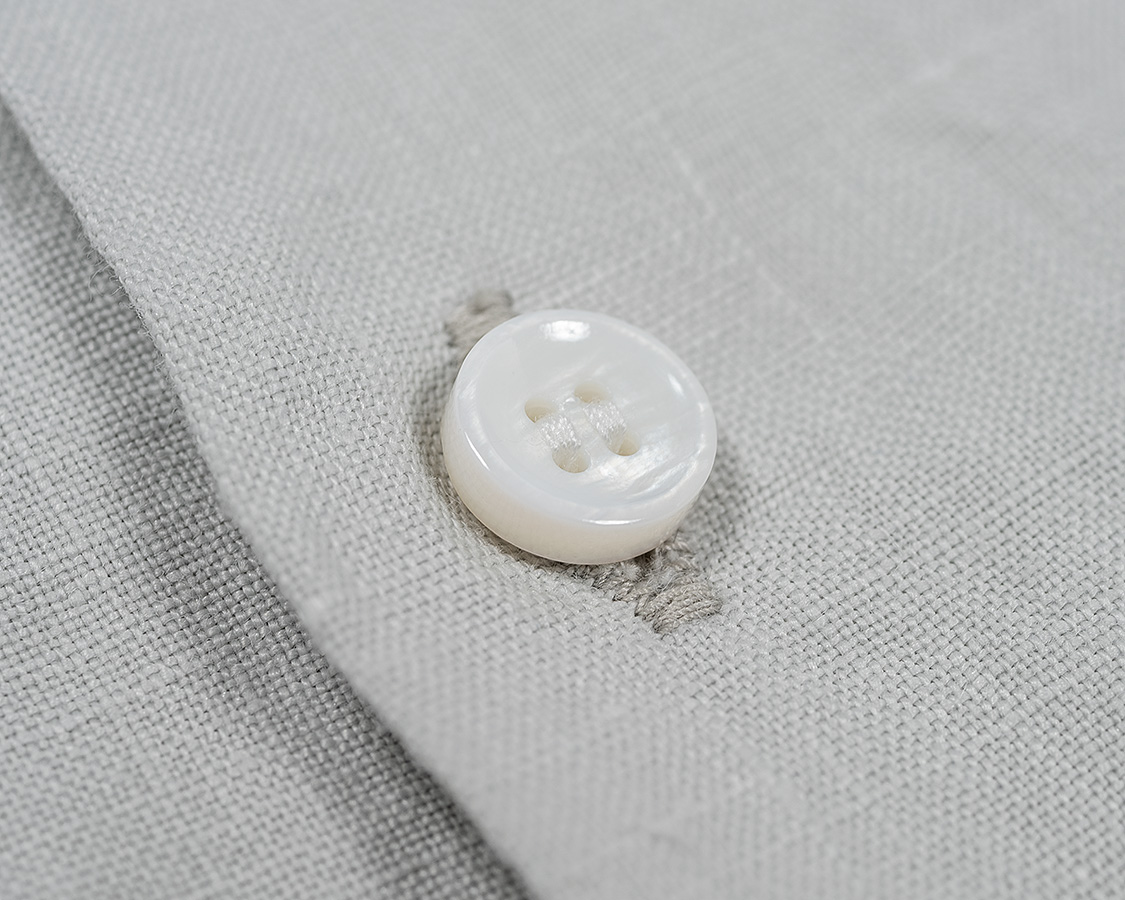 淡水貝を使ったボタン。ポリエステルなどの樹脂ボタンのほうが洗って割れる心配は少なくコストも下がるのですが、やはりリゾートの雰囲気には貝ボタン!と今回も貝ボタンを使いました。