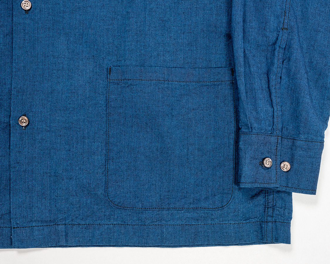 Open Collar Shirt, Indigo Chambray |