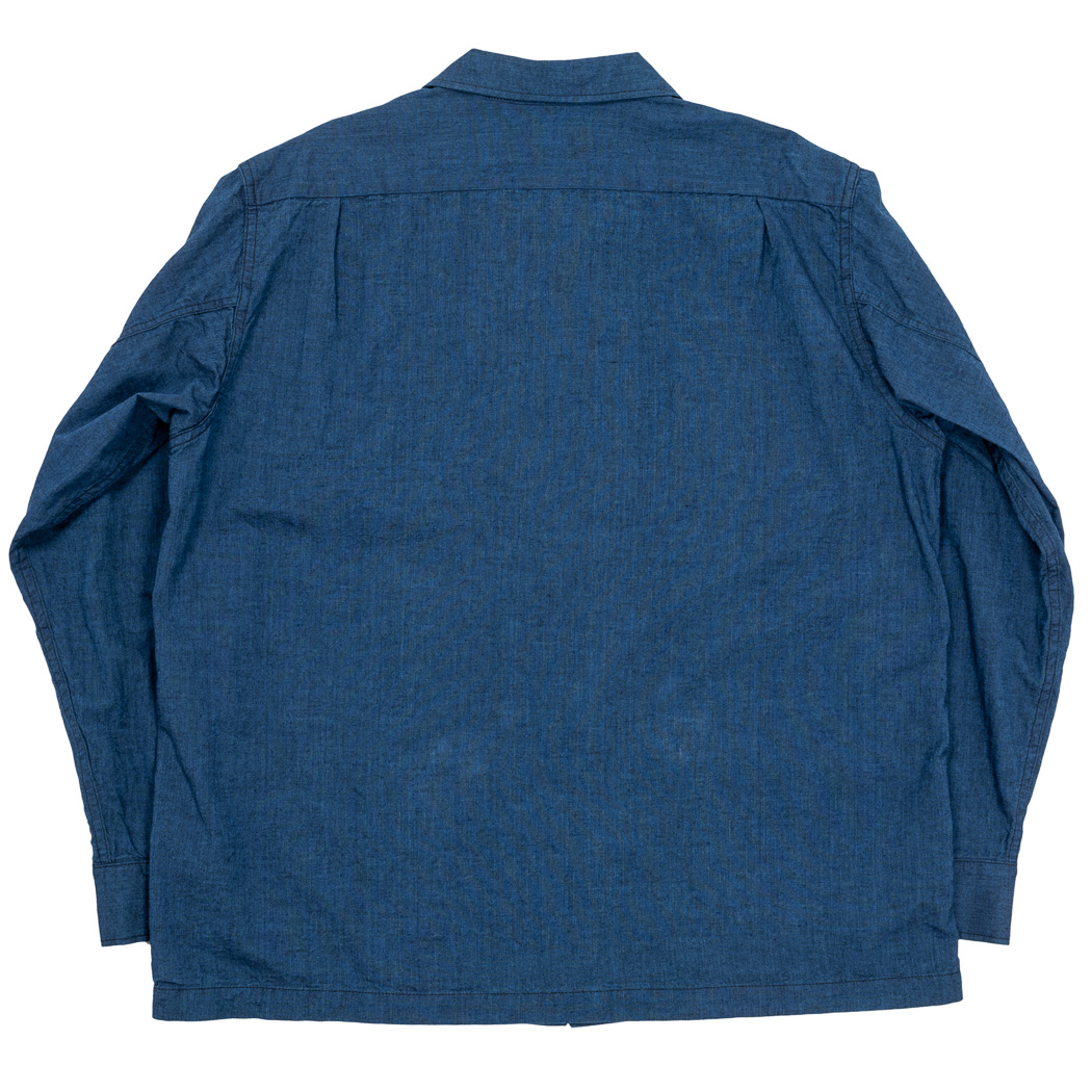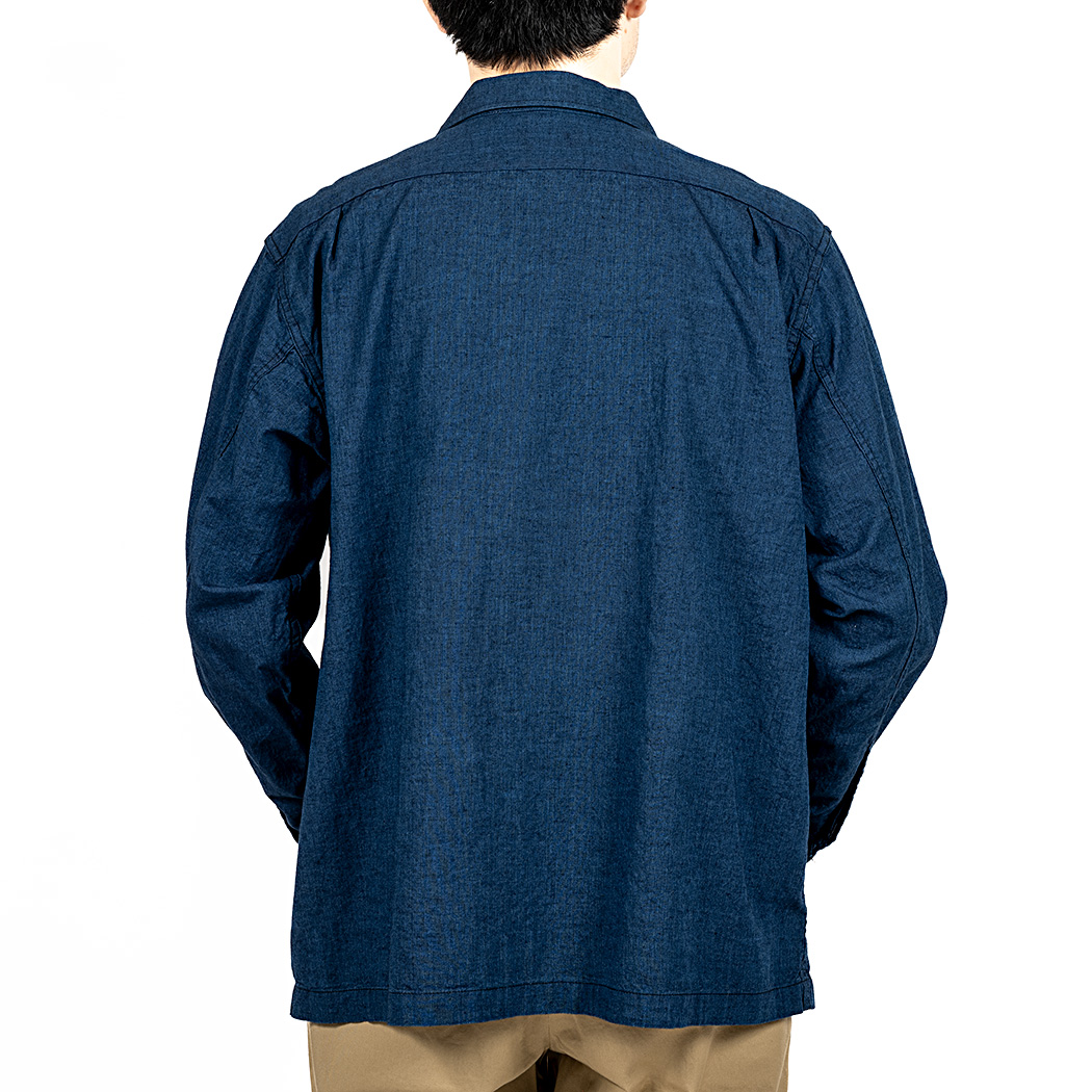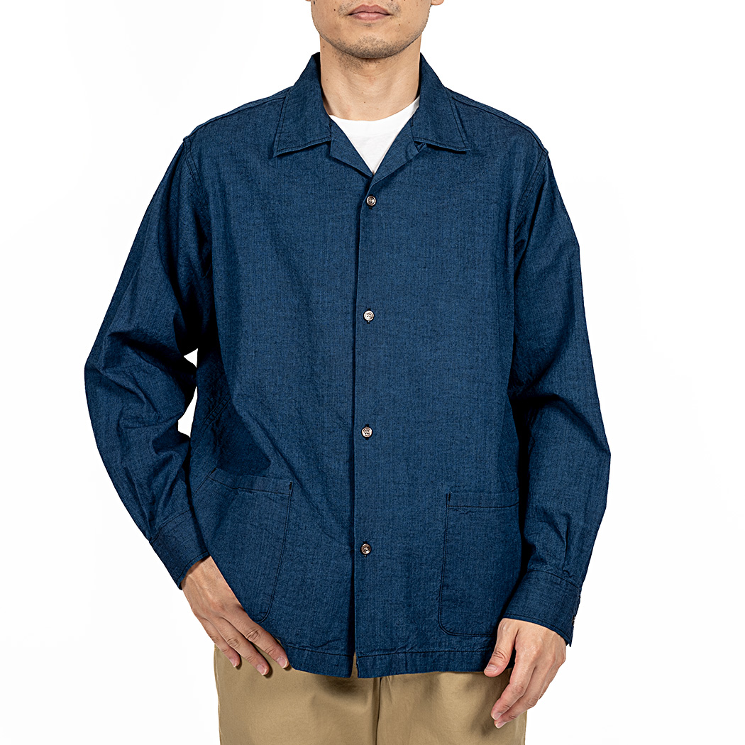 シャンブレーは5 オンス。インディゴ染なので色落ちします。白物と一緒に洗濯は絶対NG。
