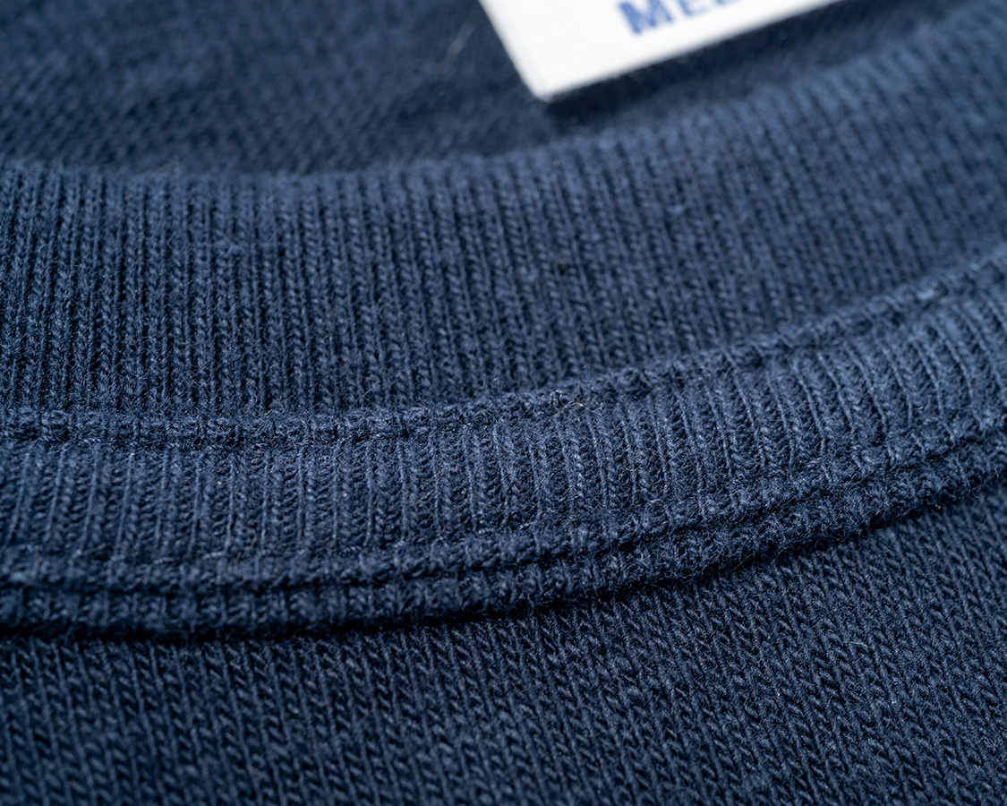 ただ、いくら2階立てバインダーでもリブ自体がしっかりしてないと伸びる。ということで、ボディに合わせた厚いリブで2階立て。毎回、この製品縫うたびにミシン屋さん呼んで、ばっちり糸調整する、手間のかかる仕様です。